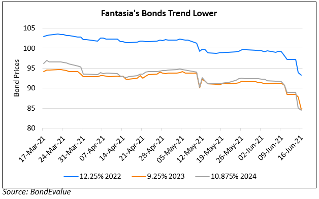 Another Chinese developer Fantasia saw its dollar bonds fall by over 2.5% on Tuesday and continue to move lower this morning. While the reason for the fall is not clear, Bloomberg Intelligence says that the fall may be triggered by weakness in Evergrande. Fantasia bought $10mn of bonds on Tuesday and Bloomberg Intelligence says that they have bought $41.6mn in the secondary market since May. They added that a stronger action like a tender offer for one of the bonds, say the $300mn 15% bonds due December 2021 could halt the slide. Fantasia said it “maintains good liquidity after purchasing the notes” and that it may make further buybacks depending on market conditions.