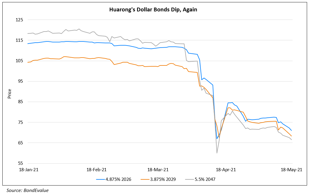 China Huarong Asset Management Co. is said to have closed funding arrangements with China’s state-owned lenders to repay debts due through “at least the end of August”, as per people familiar with the matter reported by Bloomberg. The sources added that Huarong expects to complete its 2020 financial results by end-August, which have been delayed since April triggering a massive sell-off in its bonds and credit rating downgrades. The sources mentioned that under the new arrangements, the distressed asset manager would be able to secure funding from the likes of ICBC under guidance of the regulators. However, it is unclear whether the funding arrangements will hold beyond August. Updates from the Huarong saga are being closely watched by bond investors globally as it would provide an insight into the extent, if any, of Beijing’s support towards distressed Chinese corporates. Huarong’s dollar bonds continue to trade at distressed levels – its 2.5% bonds due in July this year are trading at 95.5, its 4.875% 2026s at 71 and its 4.5% perp at 64.25. The stress seems to be spreading to onshore bond investors as well with its CNY denominated bond due 2023 falling ~19 points on Monday to 80.