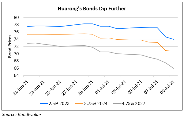 China Huarong’s dollar bonds fell over 2% on Thursday. While reasons for the fall are unclear, Huarong gave an update that they have repaid their $400mn bond that was due on July 3. Huarong has been in the news with investor concerns on the company delaying its 2020 annual results further noting that auditors require more time and information. Besides, the extent of state support if any is yet to be seen.