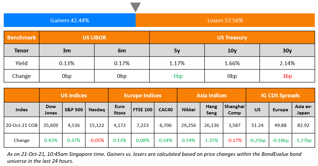 Indofood CBP Sukses Makmur raised $1bn via a two-tranche deal. It raised $600mn via a 10.5Y bond at a yield of 3.541%, 30bp inside initial guidance of T+220bp area, and $400mn via a 30.5Y bond at a yield of 4.805%, 30bp inside initial guidance of T+300bp area. The bonds have expected ratings of Baa3/BBB– (Moody’s/Fitch). Indofood CBP Sukses Makmur is one of the largest producers of packaged food products in Indonesia. The new 10.5Y bonds are priced 21.1bp wider to its existing 3.398% 2031s that yield 3.33%, while the new 30.5Y bonds are priced 17.5bp wider to its existing 4.745% 2051s that yield 4.63%.