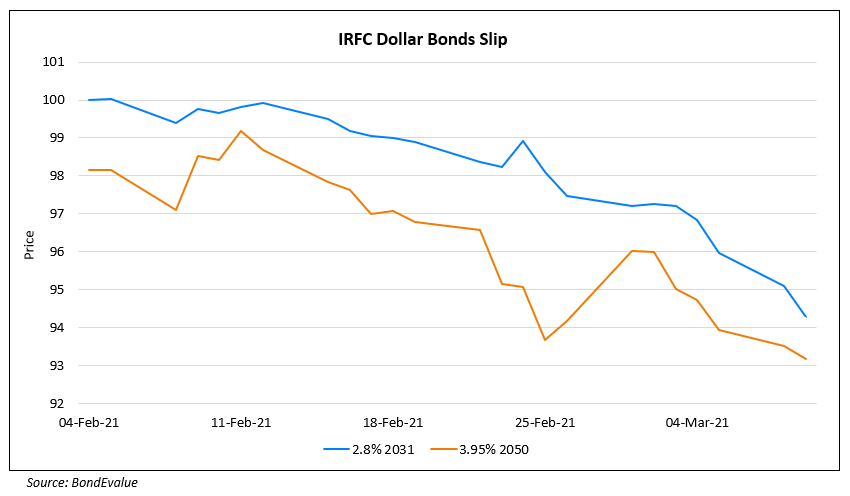The company last tapped the dollar bond markets in early February, when it raised $750mn via a 10Y bond at a yield of 2.8%, 167.5bp over Treasuries at the time of issuance. The 2.8% 2031s have slipped on the secondary markets soon after issuance to 94.28 yielding 3.49% currently. Its older dollar bonds were not spared either with its 3.95% 2050s falling from 101 levels in late January to 93 cents on the dollar currently.