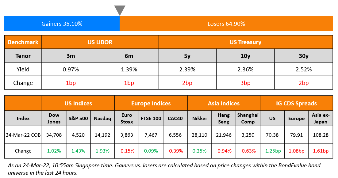 Zhuzhou City Construction Development raised $250mn via a 3Y green bond at a yield of 4.6%, 20bp inside initial guidance of 4.8% area. The bonds are rated BBB+. The proceeds will be used to refinance and invest in green and social projects.