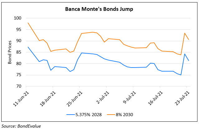 The Italian bank’s bonds rallied over 9 points yesterday and have corrected a bit from the highs.