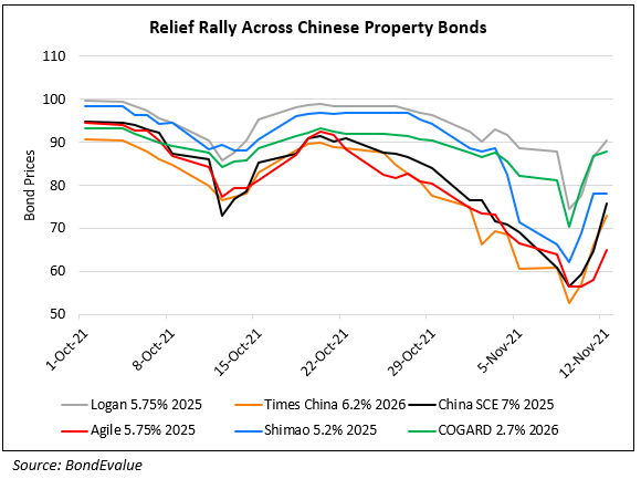 Dollar bonds of Chinese property developers across the board saw its bonds rally on the news of loosening rules regarding local-currency issuances. Reports had suggested yesterday that that regulators may adjust rules so that developers can issue debt in the domestic interbank market. Another report showed state-owned enterprises were pushing for the right to increase borrowing for mergers, which could make it easier for them to buy out struggling developers. While exact details of the news were not available, this has seen a boost in sentiment across the real estate space. Raymond Cheng, head of China-Hong Kong research at CGS-CIMB Securities Ltd. says, “The reopening of the onshore bond market is critical. Without this, the market had previously expected that half of developers would have difficulties repaying bonds due in the next three to six months.”