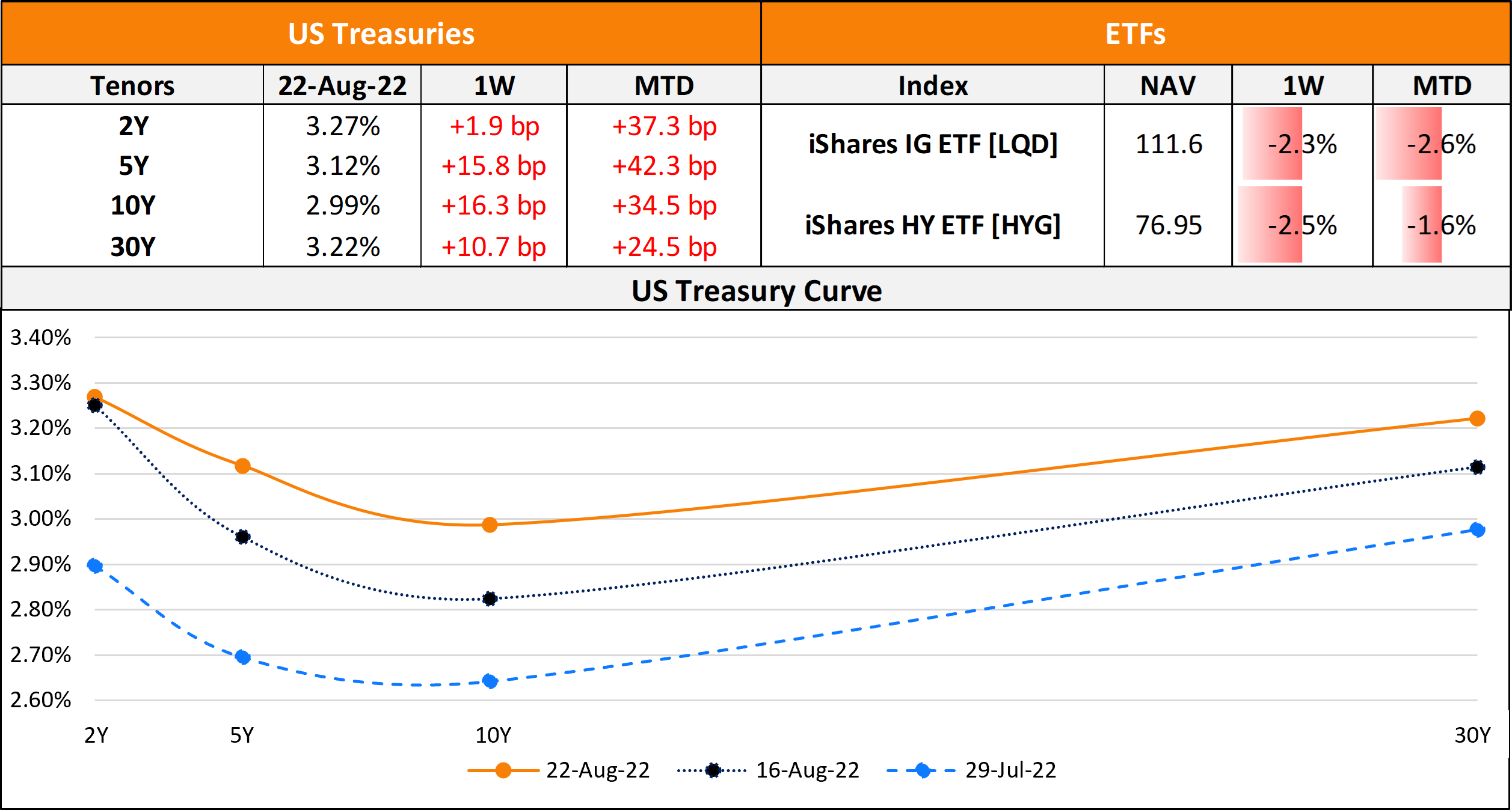 APAC ex-Japan G3 issuances saw $2.2bn in issuances vs. $600mn in the week before that with NAB and ANZ raising €1.5bn and $600mn each. In the APAC region, there were 4 upgrades and 14 downgrades combined across the three rating agencies last week.
