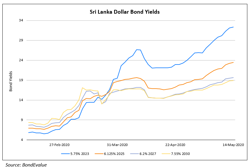 In a bid to conserve liquidity, the Sri Lankan central bank has stopped local banks from declaring dividends and foreign banks from repatriating profits under a new regulation that is in place till December 2020. Share buybacks and increases in wage/allowance to management or directors have also been banned. The central bank has injected large volumes of money in to the banking system from late February before private credit fell, leading to a loss of credibility in the currency and downgrades. Sri Lanka’s dollar bond have fallen be 12-15 points over the last month. Bond yields move inversely to bond prices.